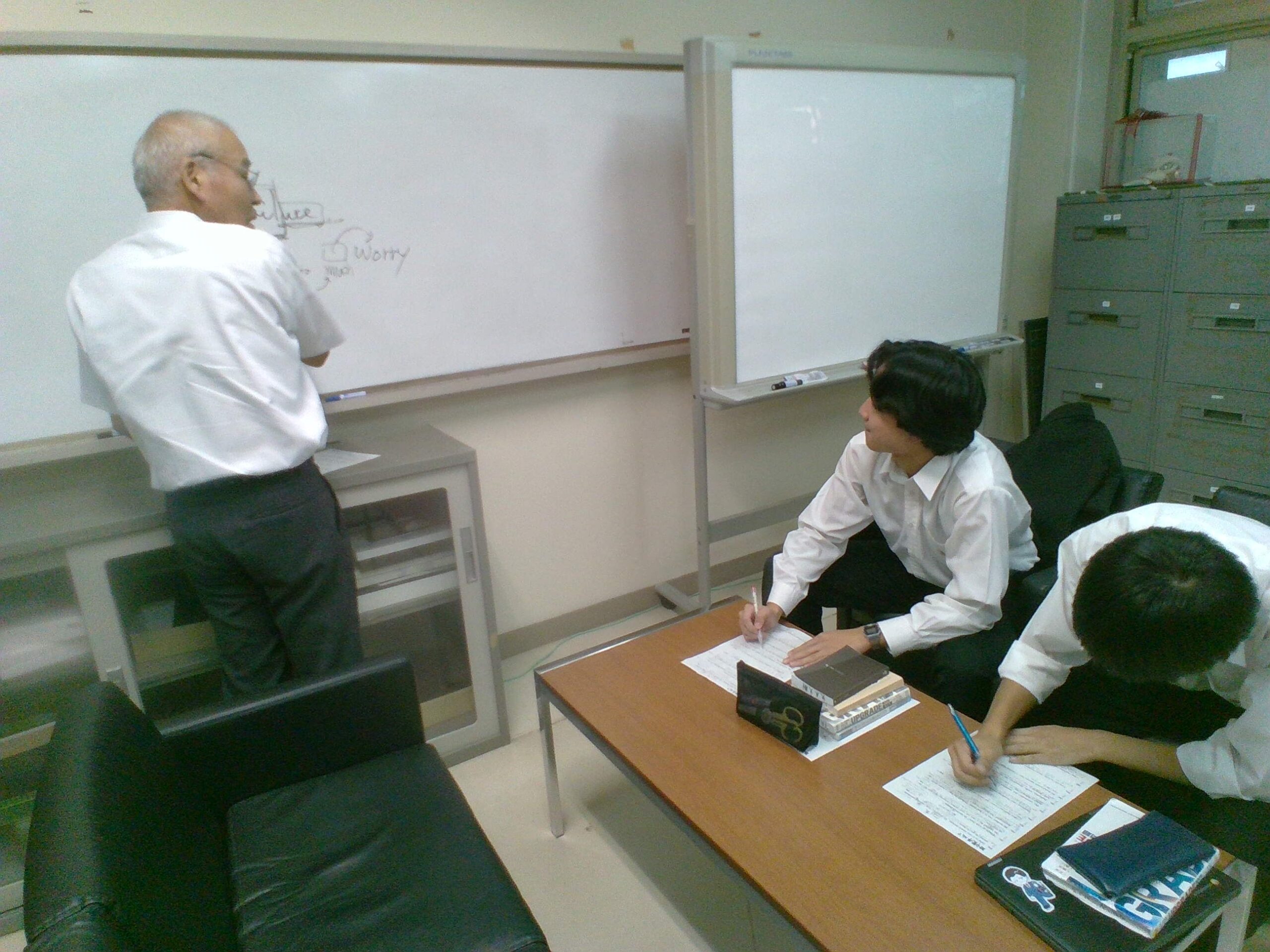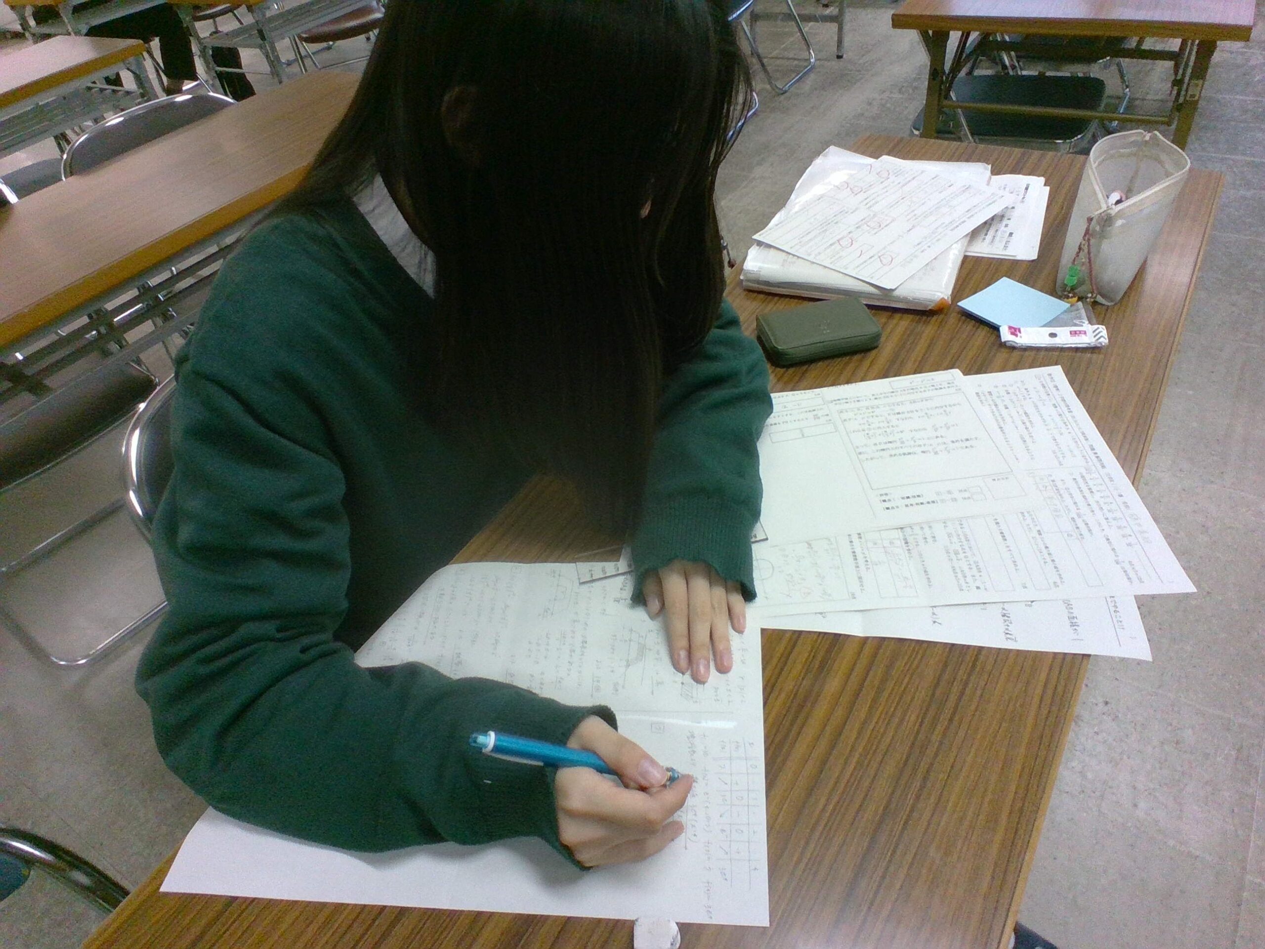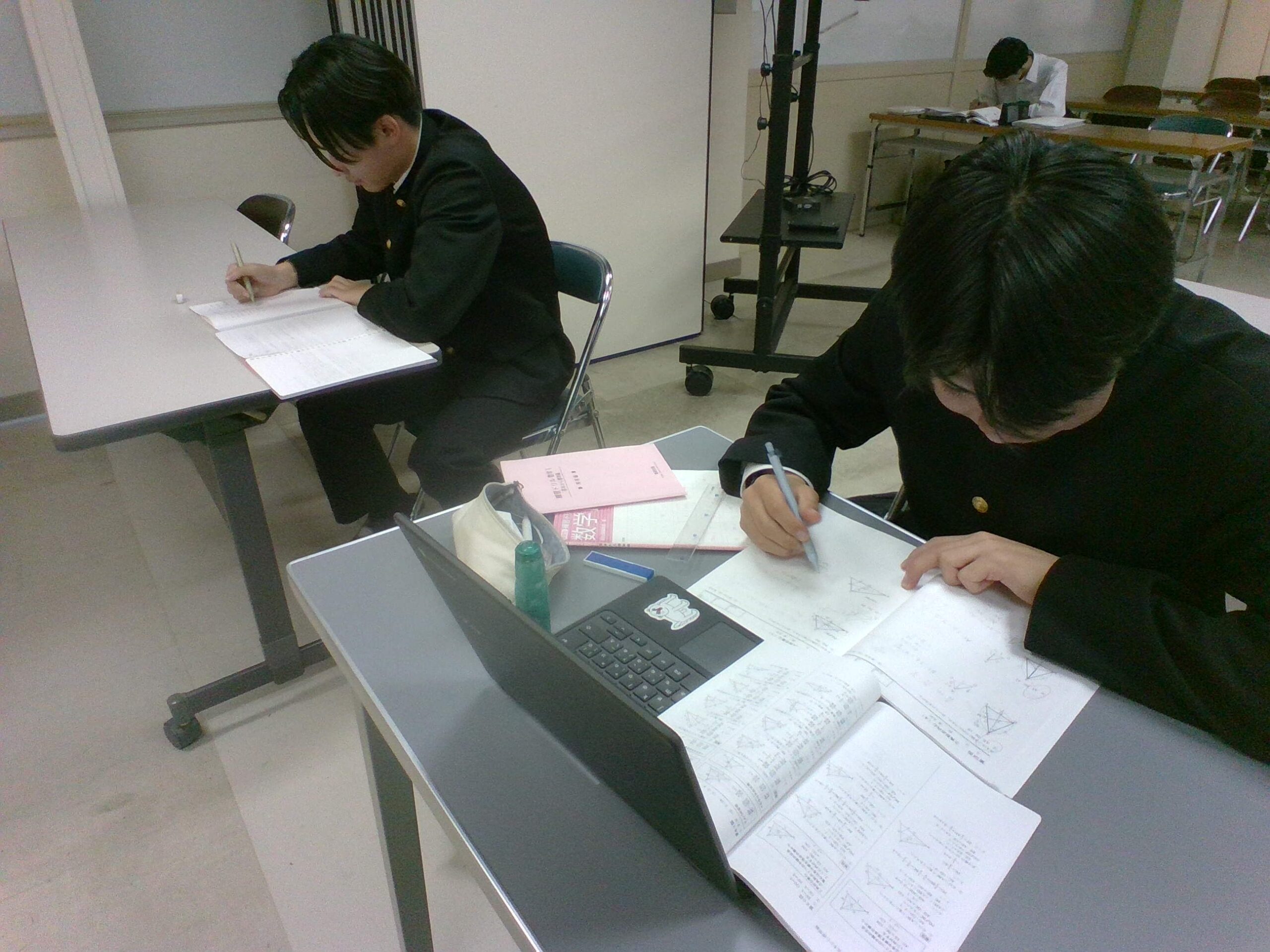 グラウンドや体育館から運動部の生徒たちの元気な声が聞こえる中、第3棟から吹奏楽部が練習に励む楽器の音が聞こえる中、本日も職員室の横では静かに自己の目標に向け頑張る人たちがいます。