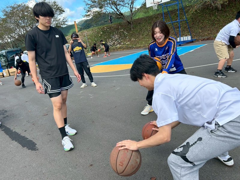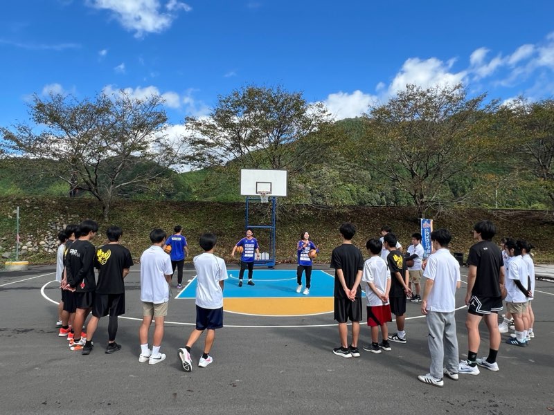 トライフープ岡山さんによるバスケットボールの実技指導では、本校のバスケットボール部の生徒たちも参加し、チームのコーチたちから実際に色んな指導をしていただきました。