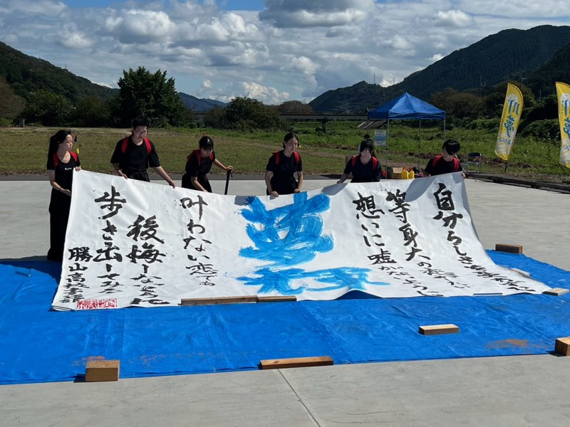 本校書道部による書道パフォーマンスも披露されました。こちらの作品は現在勝山文化センターにも展示されております。お立ち寄りの際はぜひともご覧になってください♫