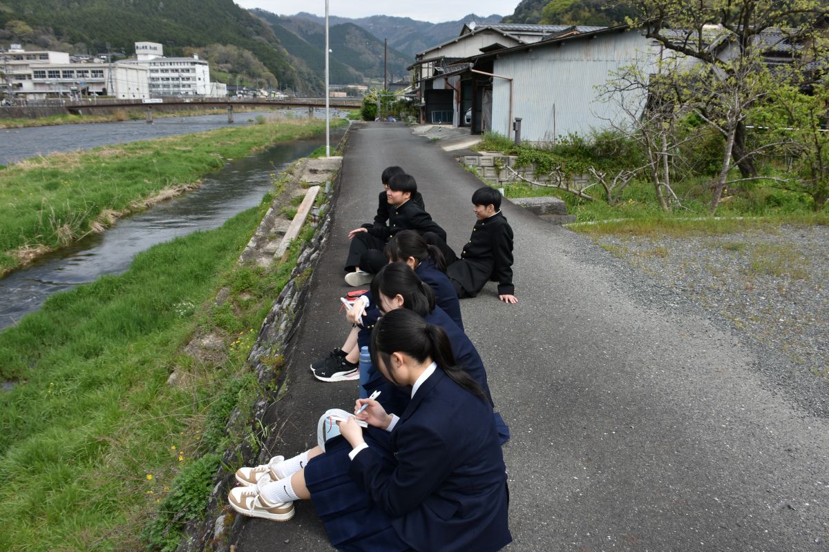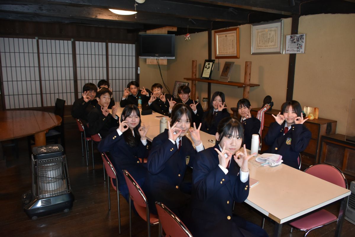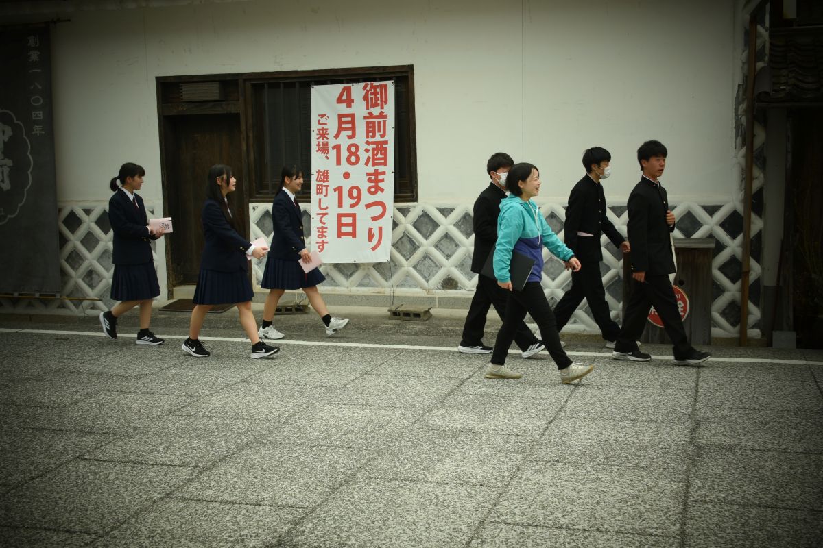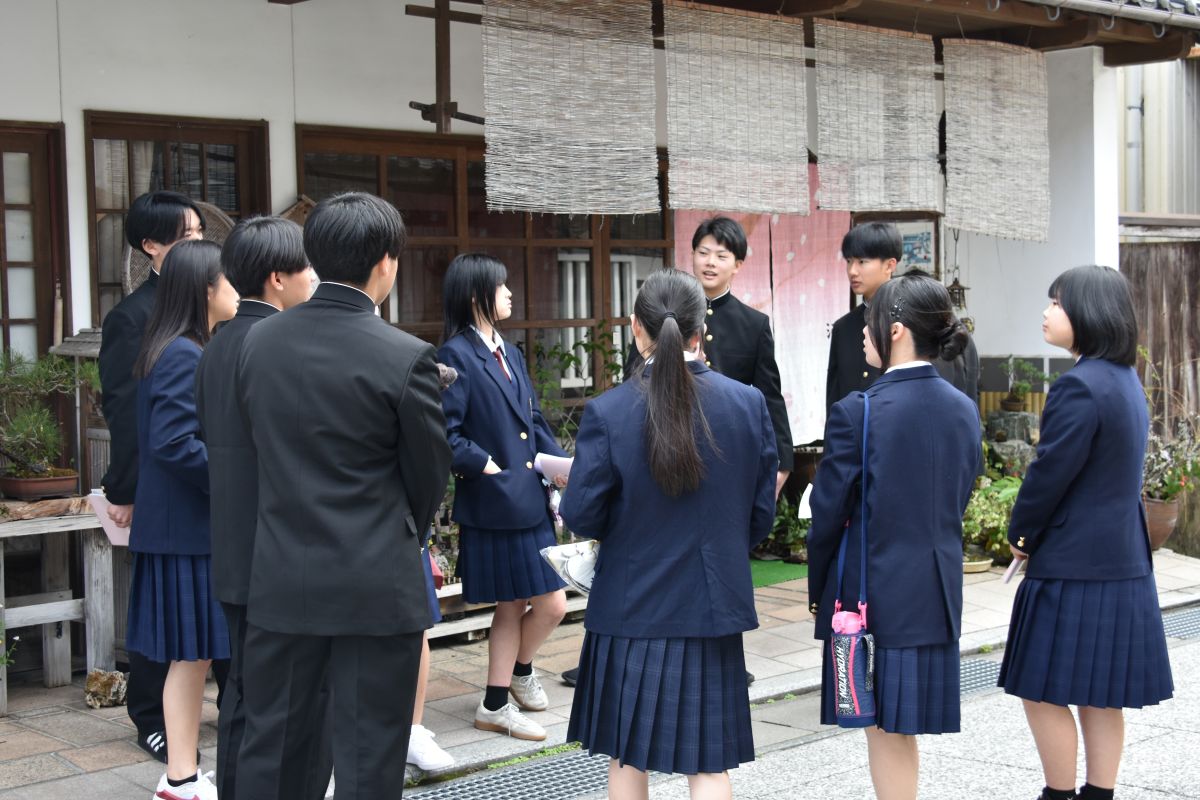 午前中は「街の「推し」を見つける!〜高校生が2時間街歩きするなら〜」をテーマに、勝山の町並み保存区域にフィールドワークに出かけました。フィールドワークの最後には、個人やチームで推したい場所や魅力とその理由を意見交換し、郷土愛や理解を深めつつ、親睦を深めました。