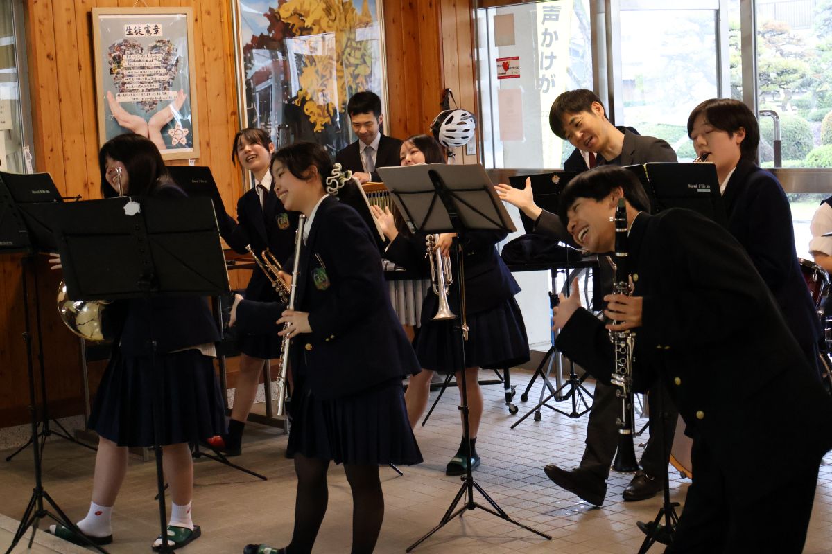 4月15日(水)のお昼休み、吹奏楽部が新入生歓迎ミニコンサートを行いました。