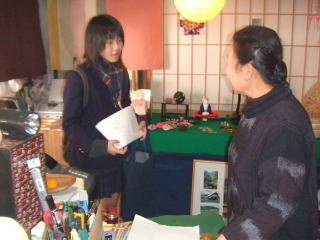 | ■創業のきっかけを教えてください。 5年半前、勝山にはお土産屋がなかったので、自分で作りました。 もともと岸屋という旅館の一角だったところを今のお店にして、 名前が同じだといけないので「喜志屋」にしました。 やあとうせは、勝山の踊りあいのてと侍が家に入ってくるときに「やあ通せ」と 言っていたどろうと遊び心で名付けました。 それで2000年2月24日に始めました。 ■仕事の中での苦労を教えてください。 お土産屋はどこも同じような物を売るから、競合にならないためにも 価格を安く違ったものを売らないといけません。 勝山の特産品は仕方がないけれど、小物などは京都などに行き、仕入れてきます。 ■この仕事だからできることは何ですか。 お客さんとの出会いや一期一会の楽しさ、人と知り合えたという喜びがあります。 ■仕事と経済の関わりは何でですか。 商売は経済である!!!『仕入れはお金がいります。そして、商品を売れればお金がまた入ります。そして、仕入れをすれば商品が売れる』商売はつながっています。皆様がお求めのものの仕入れに気配りをする。 ■どんなお土産物が観光客に人気がありますか。 小物も人気があるが、さば寿司や手作りようかん、カステラ、あめ などの食べ物が一番人気があります。 |